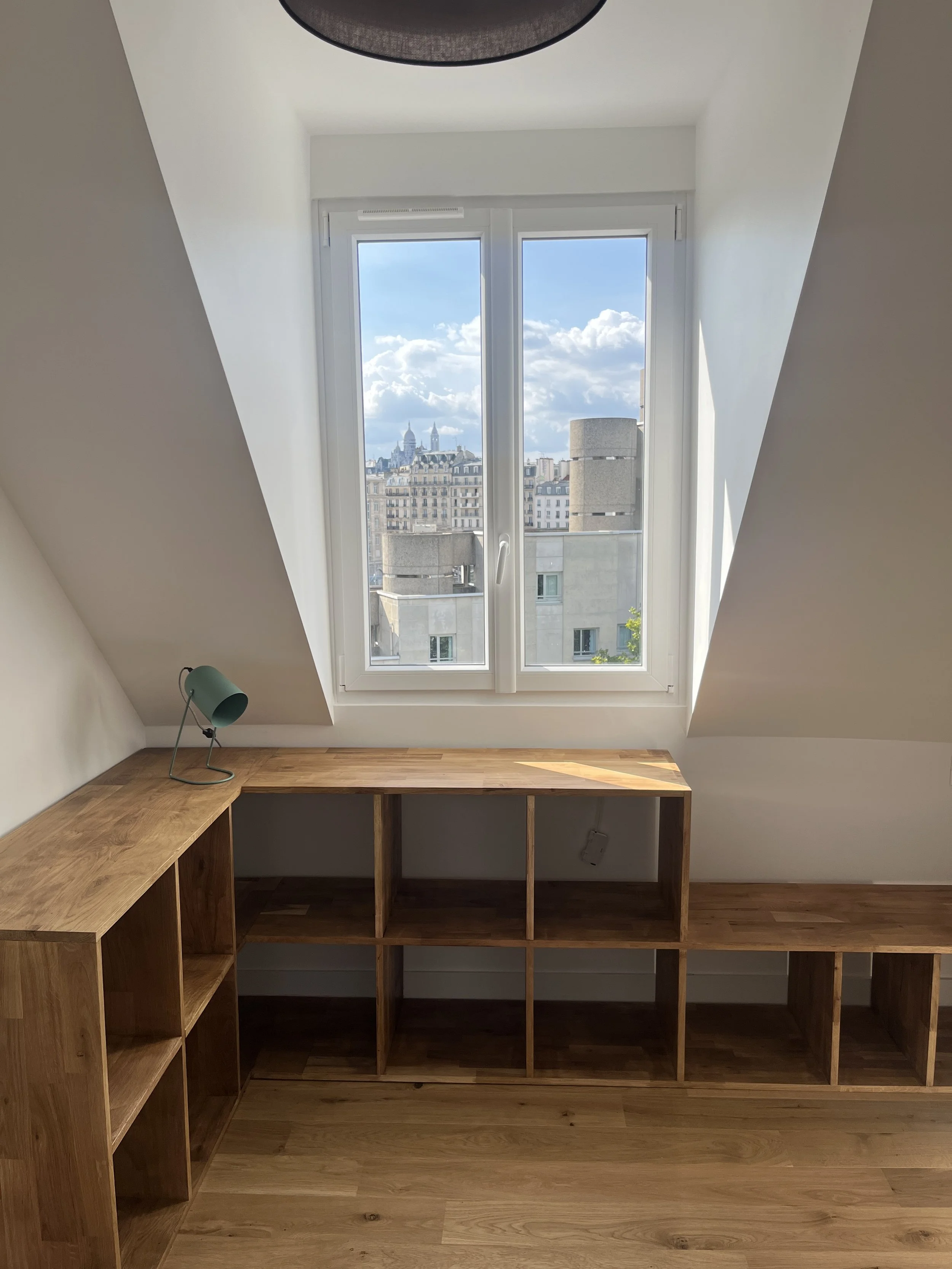 Cet appartement mansardé et atypique présentait un réel défi de restructuration des espaces et un très mauvais diagnostic de performance énergétique qui devait être amélioré.