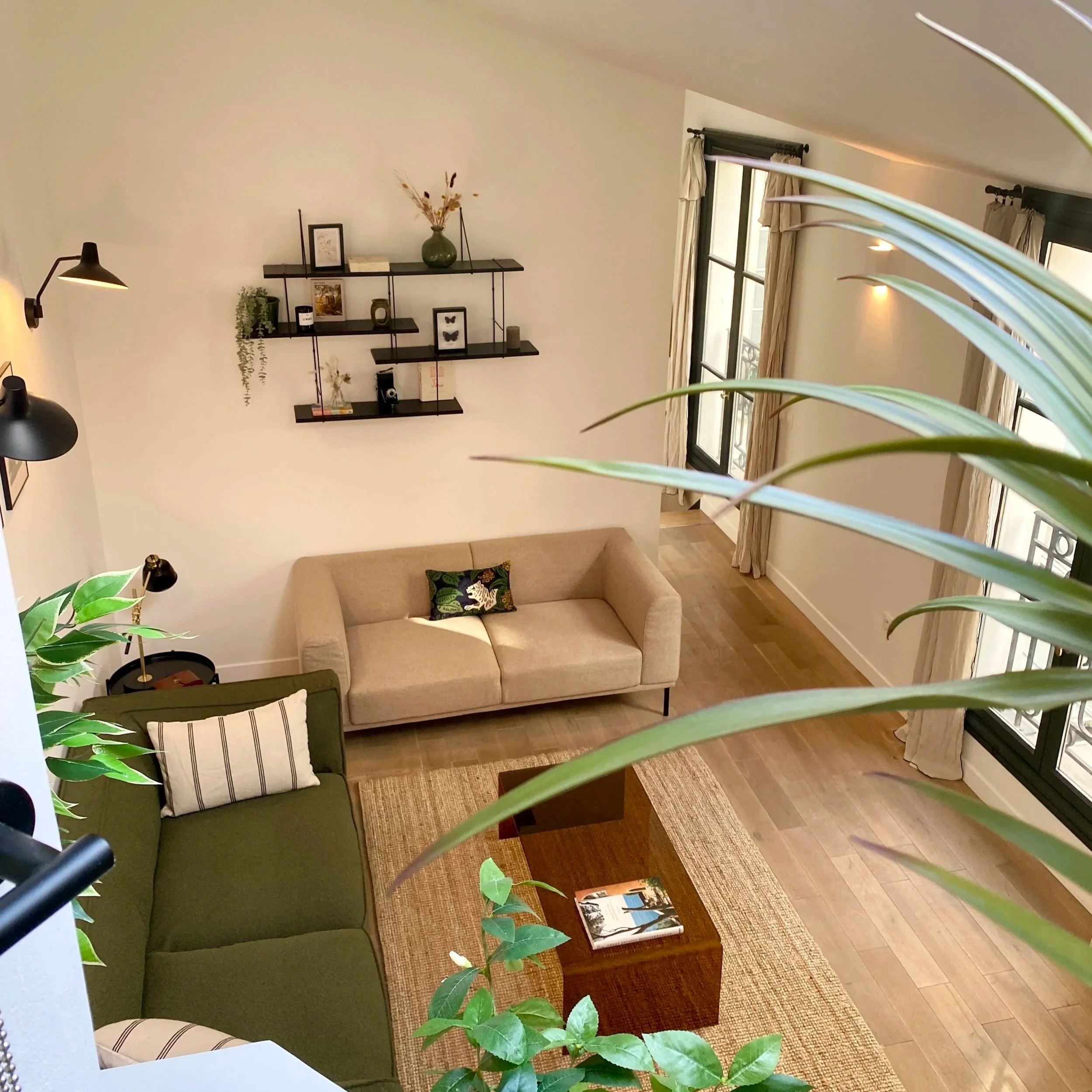 Côté décoration, de nombreuses pièces et meubles ont été chinés spécialement pour le projet, afin de créer un appartement habité, chaleureux et convivial.